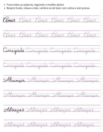 Treine 15 a 30 minutos por dia e veja sua caligrafia ficar mais bonita e firme a cada treino.